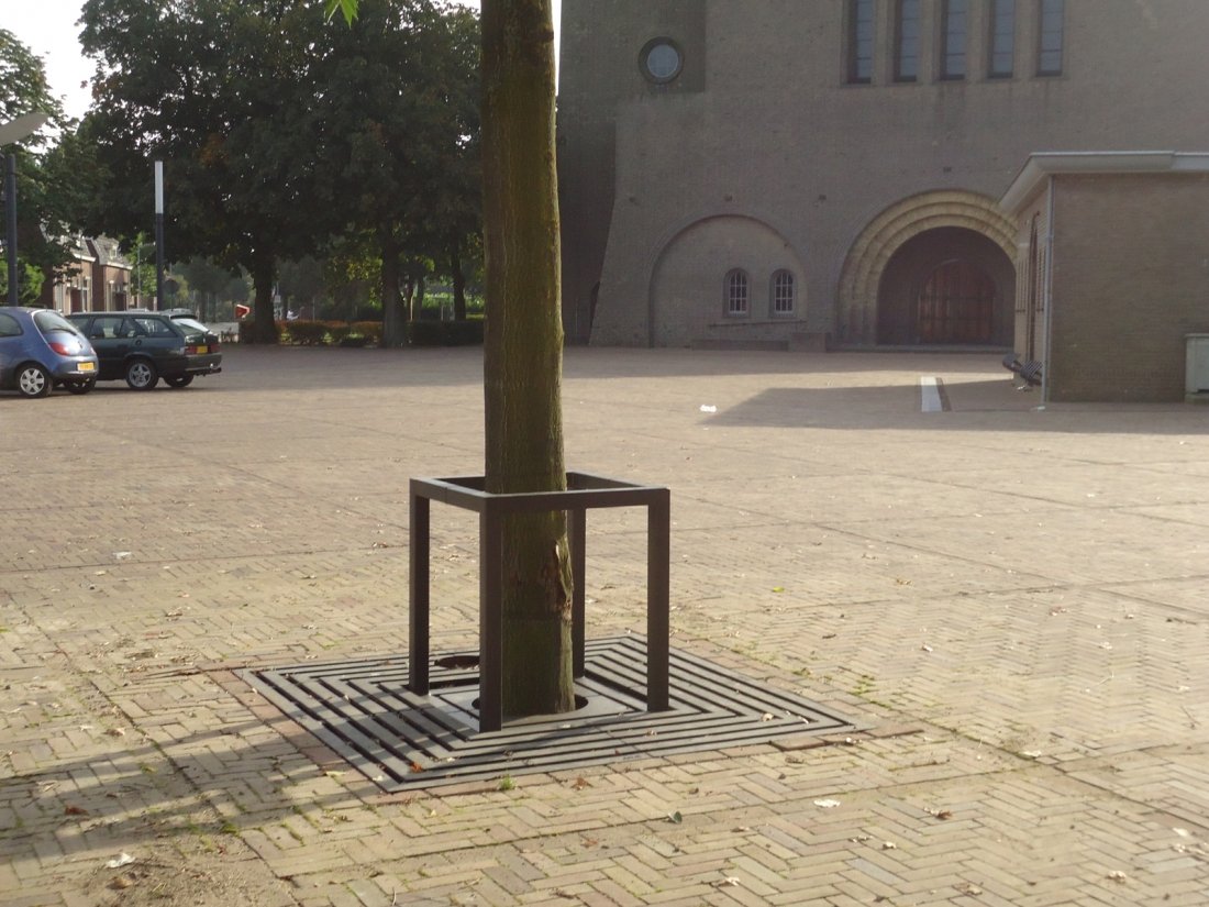St. Joseph Church Square in the Limburg town of Weert was redesigned by Heukelom Verbeek landscapers. It is a successful design because the square has the same understated sophistication as the monumental church that adorns the square, without a tenste feeling on the user.Detailing Anae tree grates suchs as model Tua are used on the square. These tree grates are trapped by a double effect: a side- and a long stretch. Both the two stretches as the tree grates are every time a click deepened, making the whole subtle trapwhise going down; a beautiful detailing that promotesthe watering of the trees. The architect has chosen to place the trees in a tree bunker. This heavy duty construction ensures that the roots of the tree have plenty of space to grow. Project: Church Square Weert design surface: Heukelom Verbeek landscaping